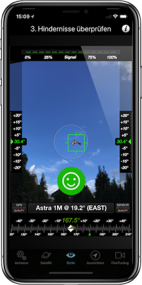 Der SatFinder hilft die dabei deine Satellitenantenne mit vier einfachen Schritten auszurichten:
