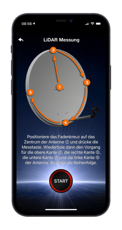 Deshalb ist der SatFinder erst ab iPhone 6Plus und iOS 14.0 lauffähig. Das Vermessen der Sat-Antenne erfordert ein iPhone mit LiDAR-Scanner. Momentan ist der LiDAR-Scanner im iPhone 12 Pro und im iPhone 12 Pro Max verbaut.