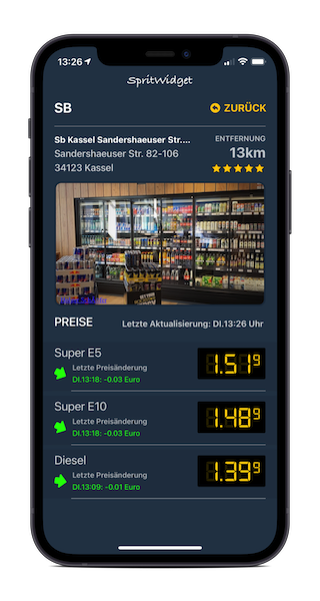 Zeigt den aktuellen Sprit Preis