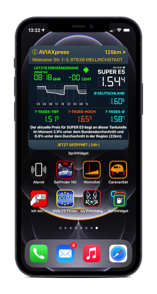 Sprit Widget zeigt dir die nächstgelegene oder preiswerteste Tankstelle auf dem Home-Bildschirm deines iPhones. So siehst du immer die aktuellen Preise, auch wenn du die App tagelang nicht startest.